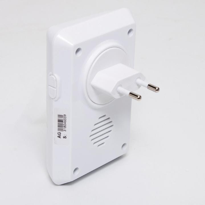 Home DBK1010AC vezeték nélküli csengő, elem nélküli, 100m hatótáv, 20 dallam, 3-fokozatú hangerő, kék LED, kinetikus nyomógomb, 230V-os tápellátás