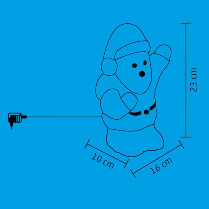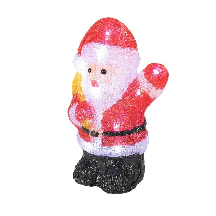 Ez a bájos dekoráció nem csak örömet hoz otthonába, hanem egyedi fényjátékkal is gazdagítja ünnepi hangulatát. A színes akril Mikulás 16 hidegfehér LED fényforrással rendelkezik. Kültéren és beltéren is elhelyezheti, így többféleképpen díszítheti vele otthonát.