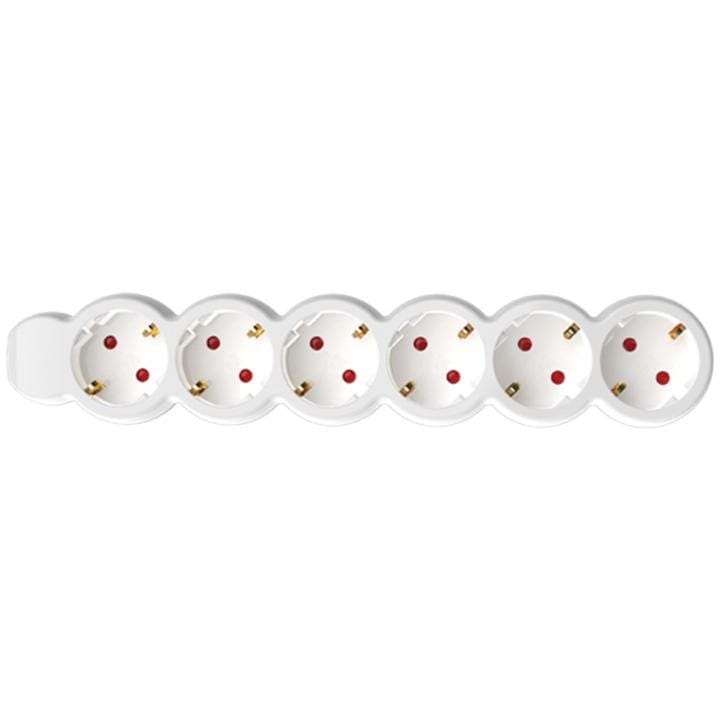 Az NV 6-3/WH/1,5 Hálózati elosztó fehér színű, 6 db aljzattal és 3 m hosszú H05VV-F 3G1,5 mm2 kábellel felszerelt. A biztonságos használat érdekében gyermekvédelemmel ellátott. Maximum 3500 W-ig terhelhető.