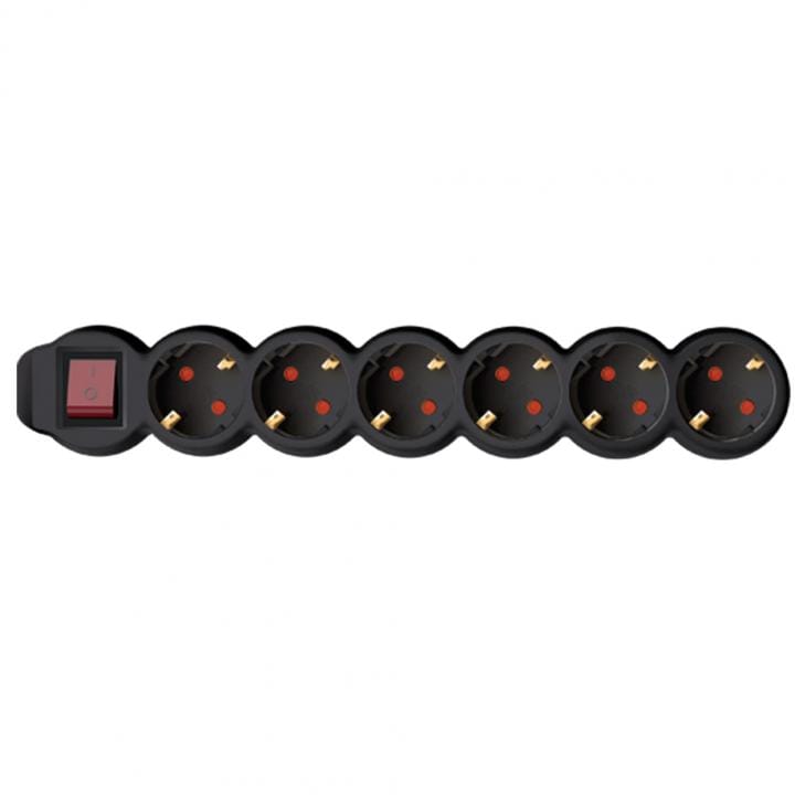 Az NV 6K-3/BK/1,5 Kapcsolós hálózati elosztó 6 db aljzattal ellátott, melyet egy fő kapcsolóval áramtalanítani tud. A biztonságos használat érdekében IP 20 védelemmel és gyermekvédelemmel ellátott. A fekete színű elosztó 3 m hosszú H05VV-F 3G1,5 mm2 kábellel felszerelt. Maximum 3500 W-ig terhelhető.