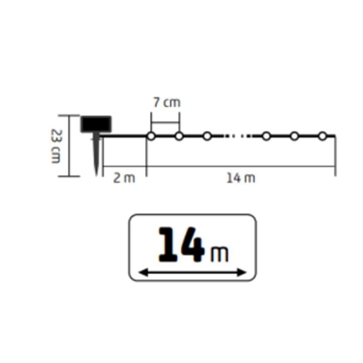 Hogyan teremthet varázslatos kültéri fényhangulatot energiatakarékosan, akár hálózati csatlakozás nélkül is?nA Home SLC200WH szolár fényfüzér tökéletes megoldást kínál mindazoknak, akik környezettudatos módon szeretnék dekorálni kertjüket, teraszukat vagy erkélyüket. A napenergiával működő fényfüzér nemcsak energiatakarékos, hanem rendkívül praktikus is, hiszen nincs szükség hálózati áramforrásra.nnElegáns megjelenés és megbízható működésnA fényfüzér 200 darab hidegfehér LED-del rendelkezik, amelyek 7 cm-es távolságban helyezkednek el a 14 méter hosszúságú zöld vezetéken. Ez az árnyalat tökéletesen illeszkedik a természetes környezethez, legyen szó bokrokról, kerítésről vagy pergoláról. A 2 méter hosszúságú tápkábel lehetővé teszi a szolár panel optimális elhelyezését a napos területen, így biztosítva a maximális töltést és működést.nnKültéri használatra tervezvenA szolár paneles tápellátás nemcsak környezetbarát megoldás, hanem hosszú távon költséghatékony is. A fényfüzér automatikusan működésbe lép sötétedés után, így Önnek nem kell manuálisan ki- és bekapcsolnia. Ideális választás, ha szeretné feldobni a kerti összejöveteleket, ünnepi alkalmakat vagy egyszerűen csak kellemes hangulatvilágítást szeretne teremteni a szabadban.nnMiért válassza a Home SLC200WH szolár fényfüzért?n- 200 db ragyogó, hidegfehér LED a letisztult fényhatásértn- 14 méter hosszú fényfüzér, 2 méteres tápvezetékkeln- Zöld színű vezeték, mely beleolvad a növényzetben- Környezetbarát szolár paneles működésn- Egyszerű telepítés, nincs szükség hálózatra vagy hosszabbítóran- Ideális minden évszakban, kültéri dekorációhoznnTegye igazán különlegessé a kertjét vagy teraszát – válassza a Home SLC200WH szolár fényfüzért, és élvezze a természetes energiával működő fények meghitt ragyogását minden este!